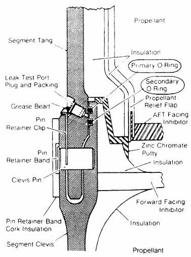 O-環本來是由摩騰公司設計的。原先的設想是在推進劑燃燒的時候,壓力會把O-環壓下去,但是因為連接部的厚度比外壁要大三倍,強度也大得多。由此會引起外壁突出而致使連接變形,使O-環不能嚴密地封住管道。維克斯告訴我這種情況叫做「連接旋轉」,早在太空梭之前就被發現了。