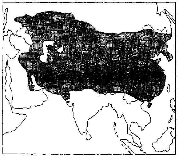成吉思汗於公元一二二七年攻西夏時身故。他的帝國分作四部分:金帳汗國(Golden Horde)包括俄羅斯之大部疆域、莫斯科和基輔(Kiev)在內;波斯汗國所轄自阿富汗邊疆及於伊拉克邊疆;另一汗國在兩者之間而向東延伸,概括今日蘇聯中亞地帶與中國新疆,只有大可汗有權統轄以上三個汗國。他自己的領域北至蒙古沙漠地帶,南達中國海之海濱。當日這不過是一個憧憬中的遠景,直到這世界上最偉大的征服者死後五十年,才成為事實。