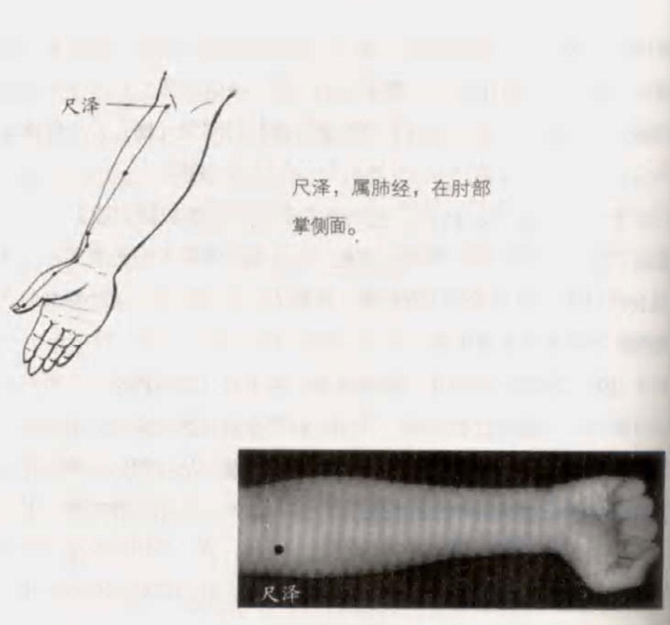 病發疼痛時按摩肺經的尺澤穴「如圖」,將姆指壓在正確的位置。當發生疼痛時,按摩正確的穴位會非常痛,因此很容易找到正確的穴位。壓住正確的穴位後,停留在穴位一分鐘,只要壓住,不需要揉動,可以立即止住和圖書疼痛,通常可以維持一天到兩天不發病。經常按摩尺澤穴,可以逐漸減少發病的機率。