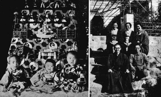 (左圖:女童節時於埔裡,左起治、民子、佐治男)