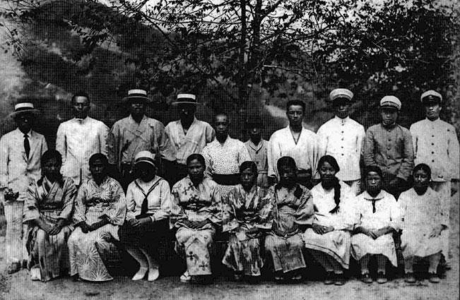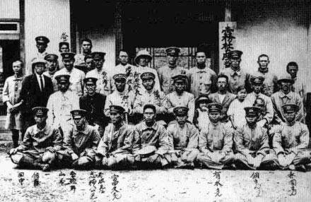 霧社小學校畢業生昭和5年8月召開首次同學會,豈料兩個月後發生霧社事件,照片中的新原重志校長、梶原音吉老師、校友小林道子、奈須也綾子皆於事件中喪生。