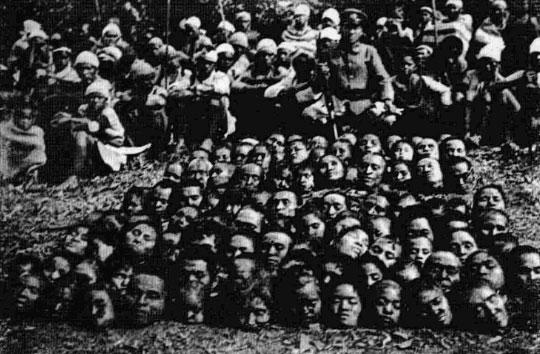 十一月二十日,川西警部指揮下,味方蕃在馬赫坡的森林岩窟周圍發現集團自殺現場,有一百四十多個屍體吊掛樹上,似乎每一家人懸掛同一棵樹。掛最多屍的那棵樹有十六個人,真是慘不忍睹。
