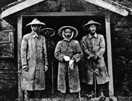 (左為井上伊之助,中為貝克)
