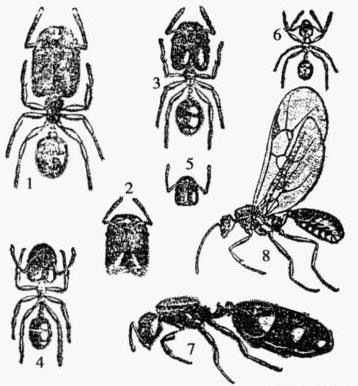5.中工蟻之頭部 6.小工蟻 7.女王 8.雄蟻