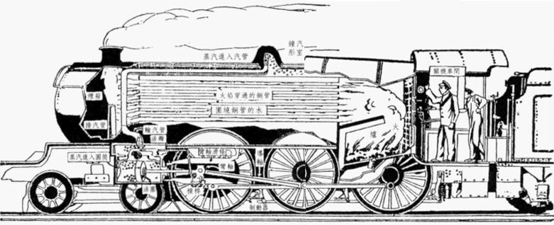 「火車頭上要裝許多煤來餵火,還有許多水在蒸發到需要時,可添加到汽鍋裡。這些東西,都裝載在煤水車裡;就是裝在那緊接著火車頭後面的一輛車裡。煤水車裡載著一個火伕,他是伺候火爐的,還有一個司機,他是管理蒸汽進入圓筒裡的。」