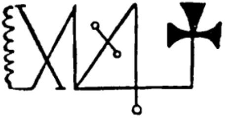 「可不是。這就是計畫,聖職,簡單明瞭,前後連貫。還有一件事。如果你拿一張歐洲和亞洲的地圖來,追循計畫的發展,由北方的城堡開始,移到耶路撒冷,再由耶路撒冷到雅革達,由雅革達到沙特爾,由沙特爾到地中海岸,最後再由那兒到英格蘭的史前巨石柱,你會發現你已畫出了一個看起來差不多是像這樣的神秘記號。」